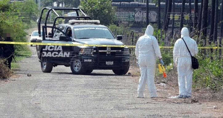 Lázaro Cárdenas, Mich.- Los cadáveres de dos hombres que estaban esposados y con impactos de proyectil de arma de fuego fueron localizados en una brecha que conecta a la Tenencia de Las Guacamayas con la población de Los Coyotes en este municipio de Lázaro Cárdenas; en el lugar fueron hallados un automóvil, una cuatrimoto y una motocicleta que estaban abandonados, dijeron contactos policiacos a esta redacción.