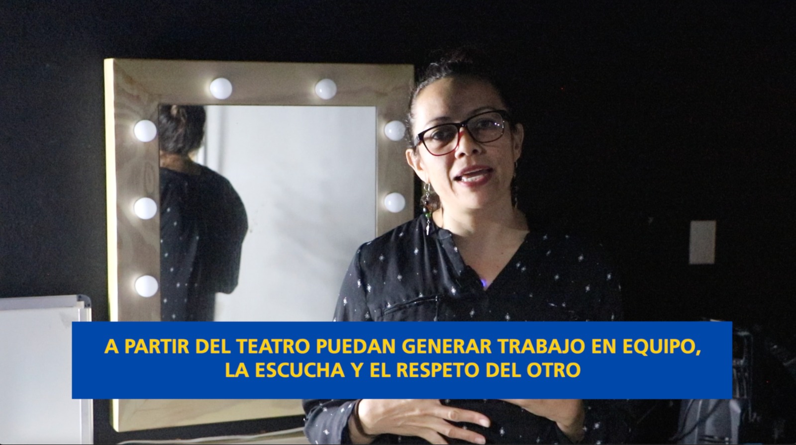 “Propiamente lo que se hace en un taller de teatro es acercar a las cosas más elementales que tiene el teatro, que puede ser la expresión corporal, la expresión verbal y también entender la ficción representada en un escenario y algo muy importante es que a partir del taller artístico puedan generar trabajo en equipo, la escucha y el respeto del otro”, dijo la profesora.