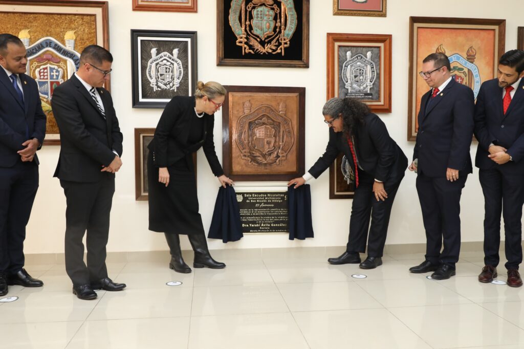 “Felicitar a la Secretaría de Difusión Cultural y Extensión Universitaria por tan bonita distribución que se hizo, pero sobre todo lo que significa para nosotros el tener una Sala “Escudos Nicolaitas”, me parece que una tarea que hemos tenido en esta administración es precisamente amar más a nuestra Universidad, estar orgullosos de cómo nos ve la gente de allá afuera”.