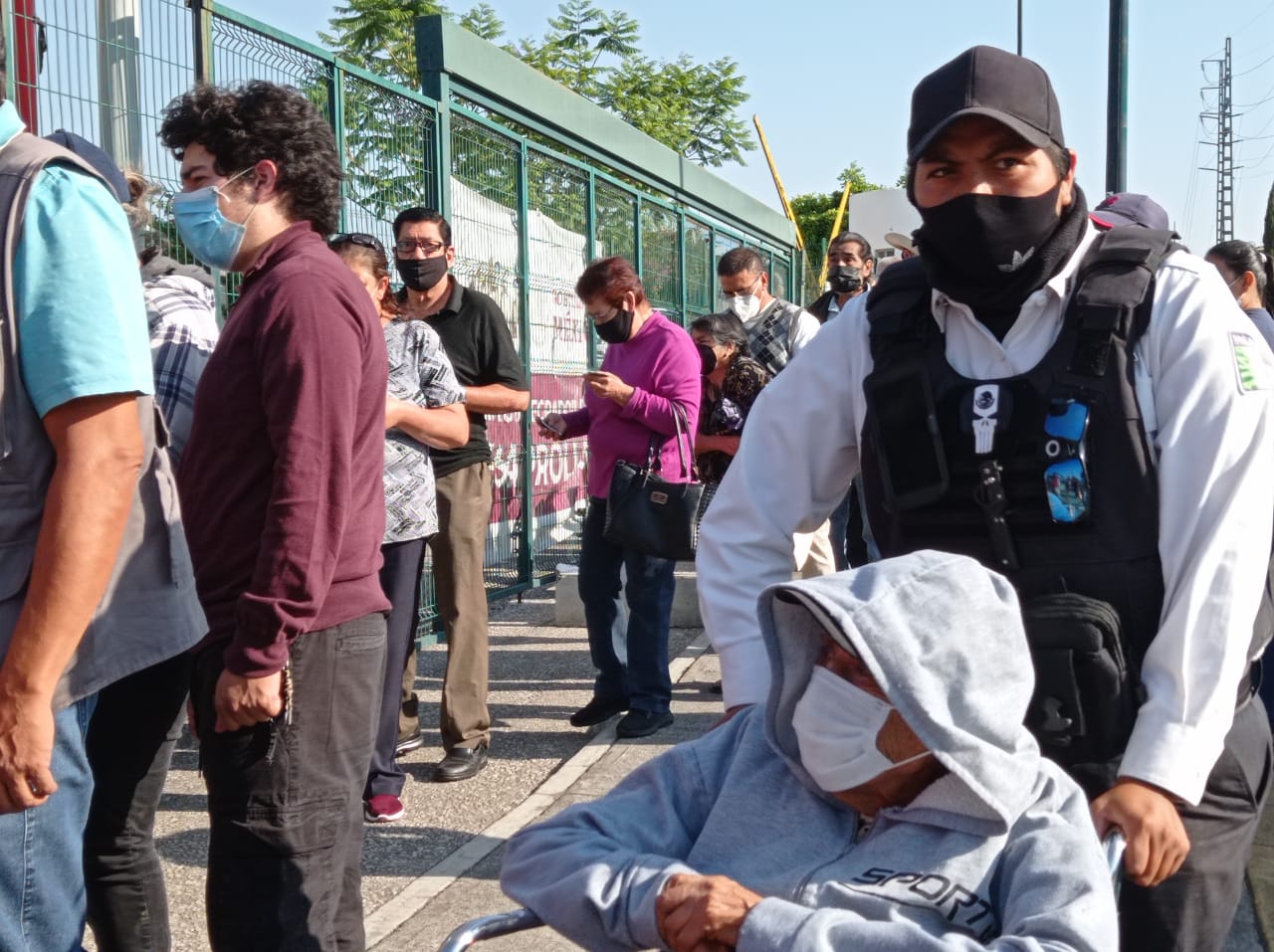 Desde las 7:30 de la mañana, los adultos mayores llegaron a hacer fila que transitaba continuamente en el único centro de aplicación. Algunos con su folio de registro, otros con su INE o su CURP, esperaban pacientes para ser inmunizados.