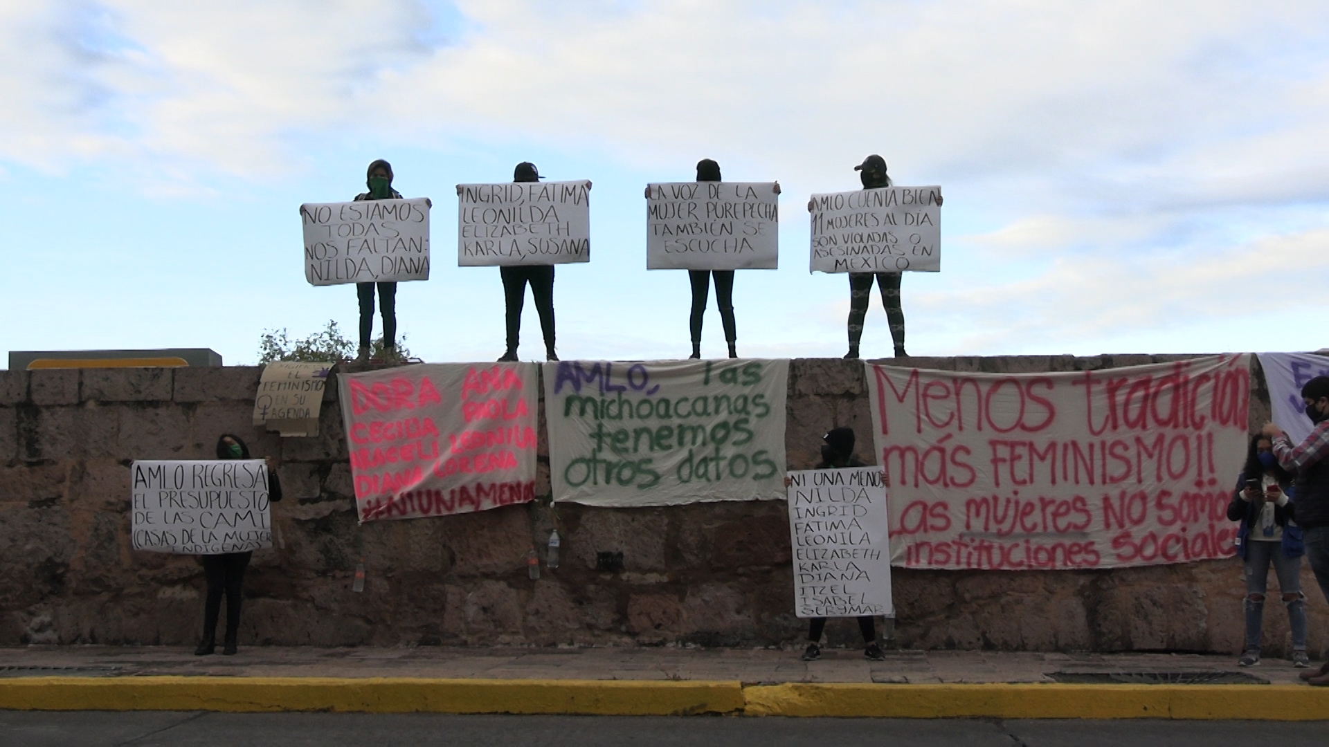 “Las Michoacanas tenemos otros datos”, se leyó en una de las mantas que colocaron activistas sobre el Acueducto, cuanto todavía los rayos de sol aún no pintaban el firmamento capitalino.