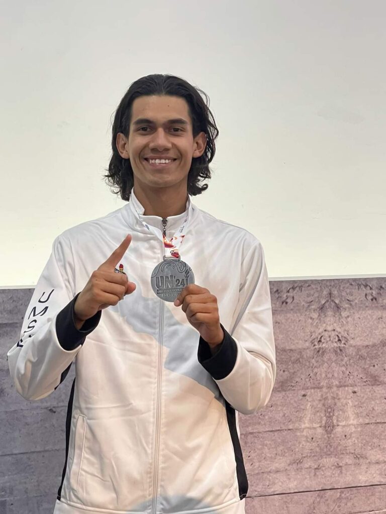 El segundo metal de las instituciones michoacanas llegó gracias al esfuerzo de Alonso Pineda, estudiante de la Facultad de Arquitectura, quien se quedó a un paso de la gloria en la máxima justa deportiva del deporte estudiantil y tuvo que conformarse con la medalla de plata en la división de 58 kilos.