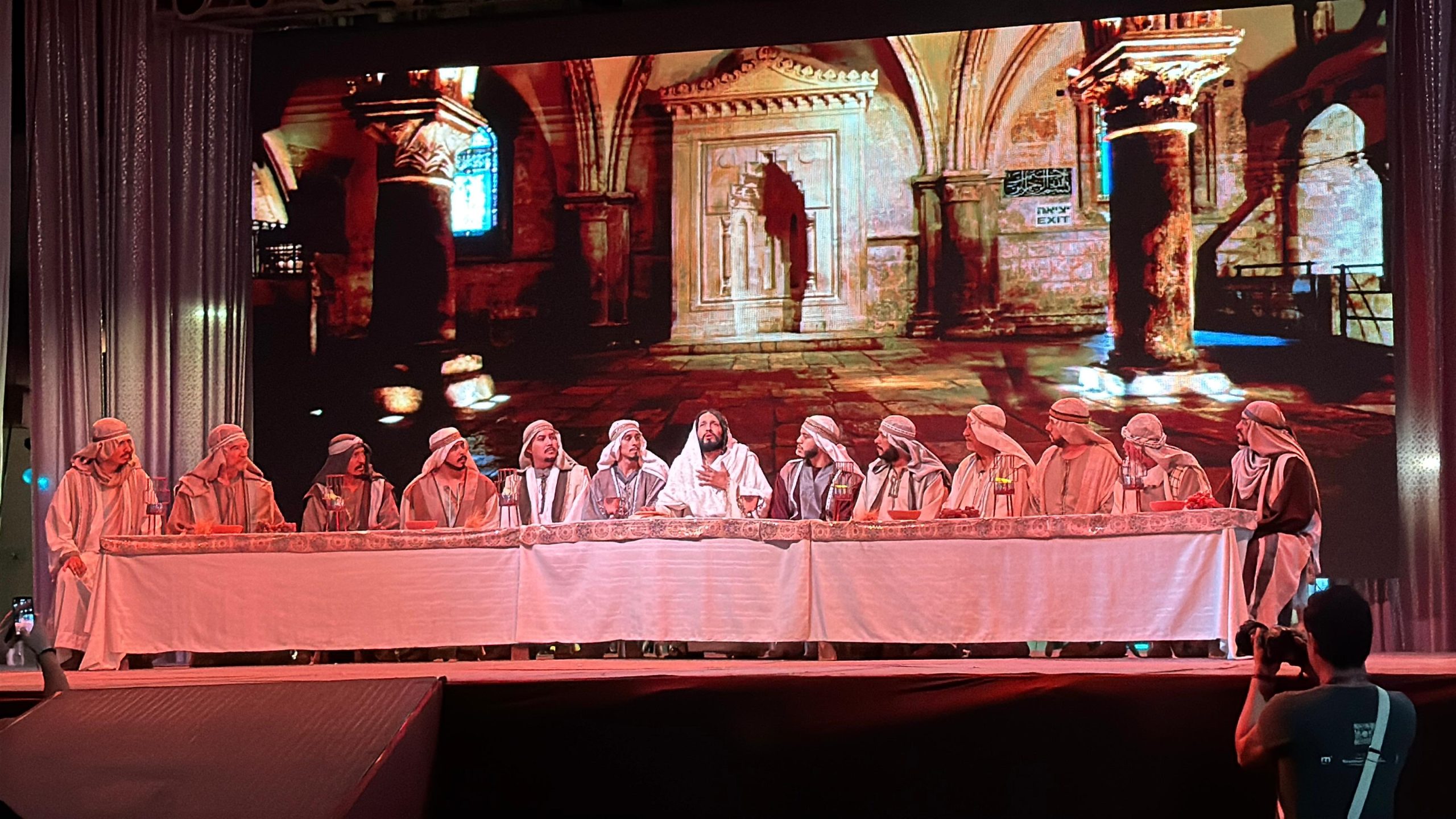 En un cambio ágil de la atmósfera, el público presenció la aparición de Jesús en la Última Cena junto a sus apóstoles. En el clímax de la escenificación, Jesucristo, interpretado por Óscar Alfredo Mejía, de 30 años de edad, entregó el pan mojado a quien lo traicionaría.