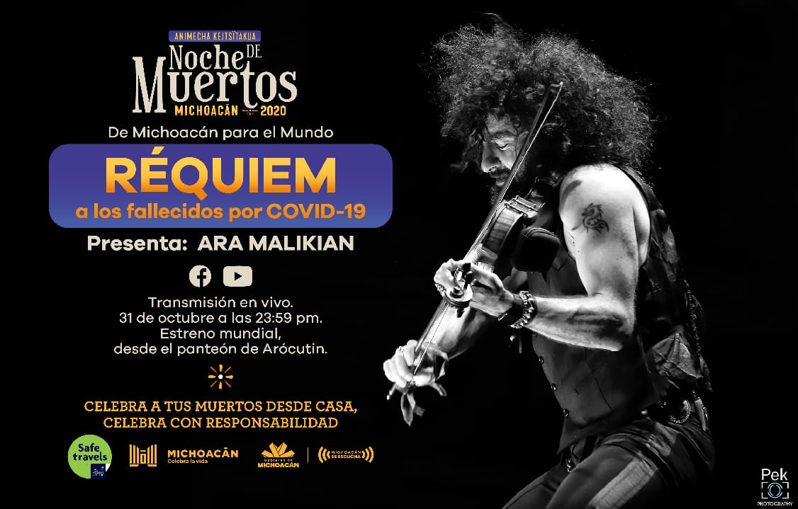 Morelia, Michoacán.-Esta noche, a las 23:59 pm, el violinista Ara Malikian ofrecerá un Réquiem en honor a las víctimas del COVID-19, desde el panteón de la comunidad de Arocutín, del municipio de Erongarícuaro.