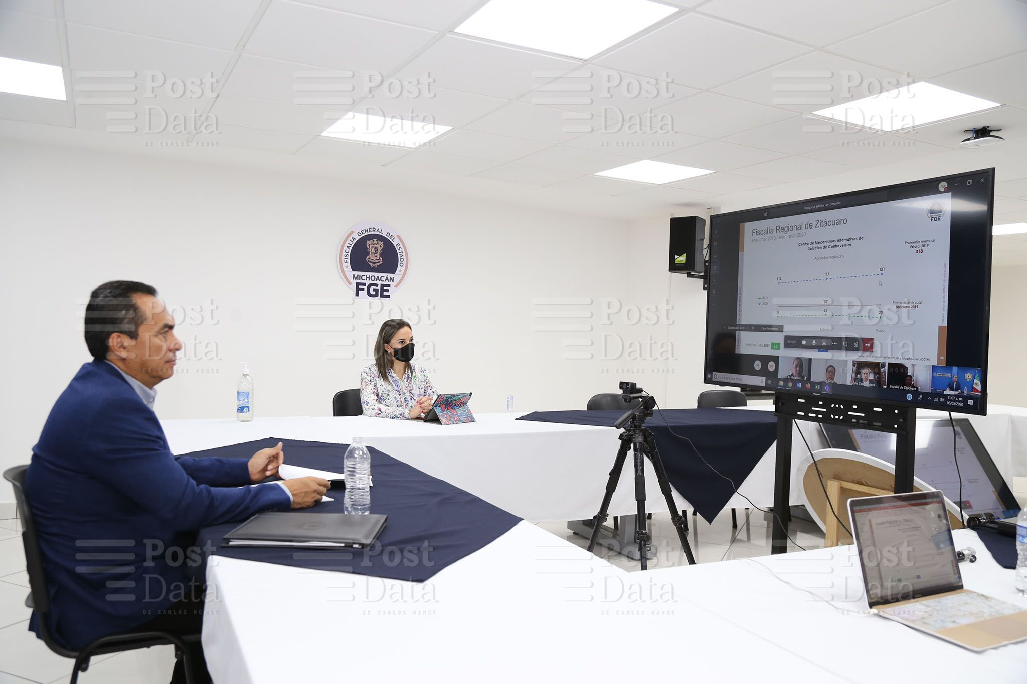 Morelia, Mich. – 15 de junio de 2020.- A garantizar el acceso a la justicia a las mujeres víctimas de violencia, a través de la investigación y persecución  del delito con perspectiva de género, convocó este día el Fiscal General del Estado de Michoacán, Adrián López Solís, a las y los servidores públicos de la institución durante la jornada semanal de evaluación.