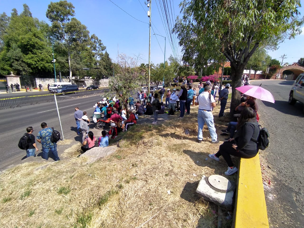 Integrantes del Frente Cívico Social, conformado por alrededor de 50 sindicatos, se concentraron este jueves en los alrededores de Casa de Gobierno en apoyo a la mesa de negociación que se realizará en Palacio de Gobierno con autoridades estatales.