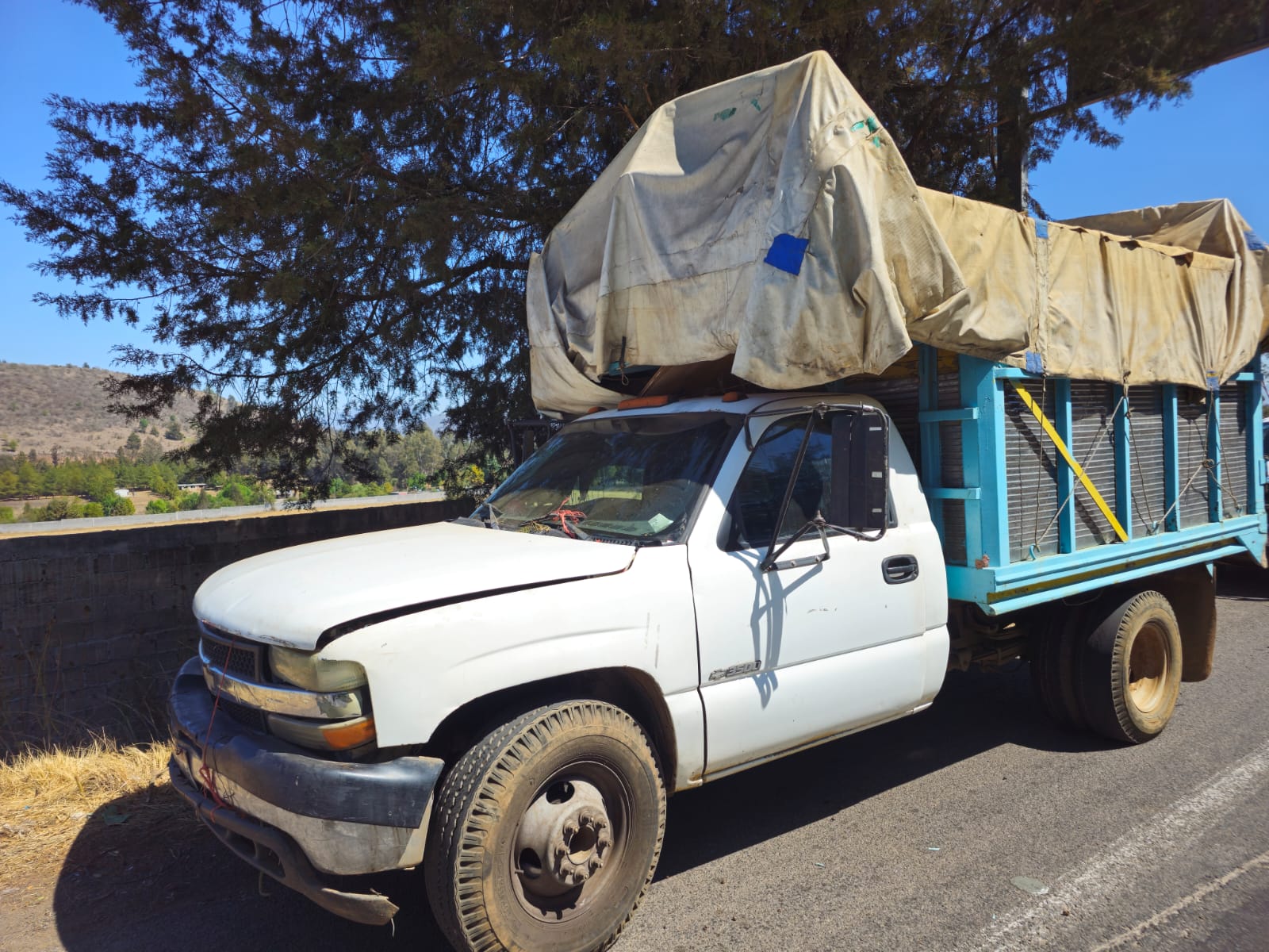 La unidad es de la marca Chevrolet, tipo estacas, color blanco, con caja azul y matrícula NN3160C. Según las fuentes, los oficiales realizaban un recorrido de vigilancia sobre la citada vialidad y detectaron el citado vehículo abandonado a un costado de la carpeta asfáltica.