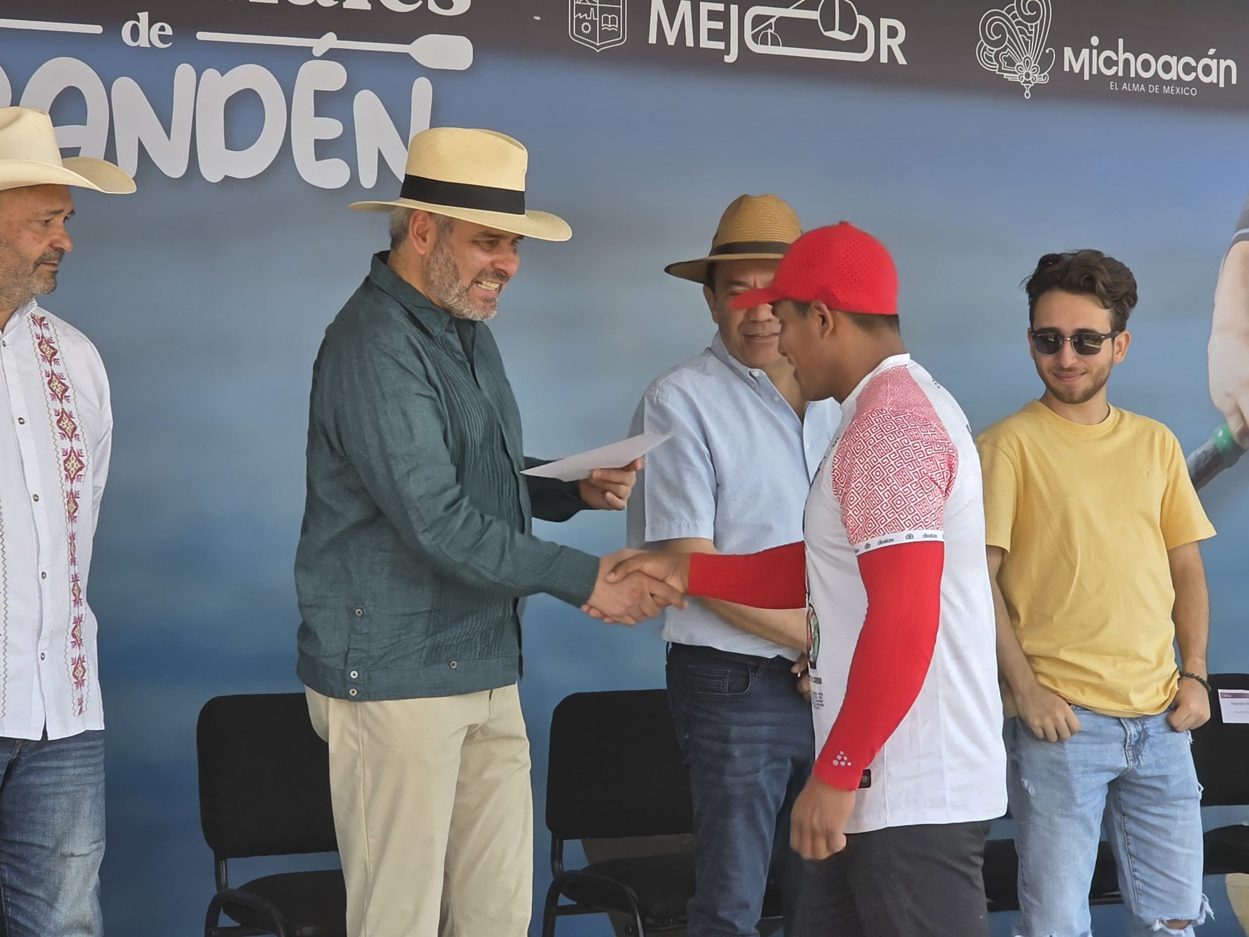 Gobernador: “Al contrario que bueno que la Marina se fijó en él, y le está dando el apoyo económico, de institución, el apoyo con sus médicos especialistas del deporte. Porque representa a México, Urandén es Michoacán y Michoacán es México”, dijo el mandatario estatal en entrevista colectiva durante la Regata Nacional de Sábado de Gloria que se celebró en Urandén, en la que le tocó premiar al canoísta michoacano Guillermo Cristóbal Quirino, quién actualmente compite por la Ciudad de México”.