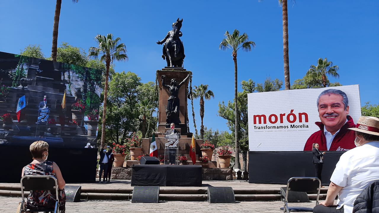 Morón Orozco señaló que su gobierno permanecerá con la línea ideológica impulsada por el presidente Andrés Manuel López Obrador, por lo que aseguró que el mejor camino para concretar los avances para la capital michoacana es con la ayuda del gobierno de México.