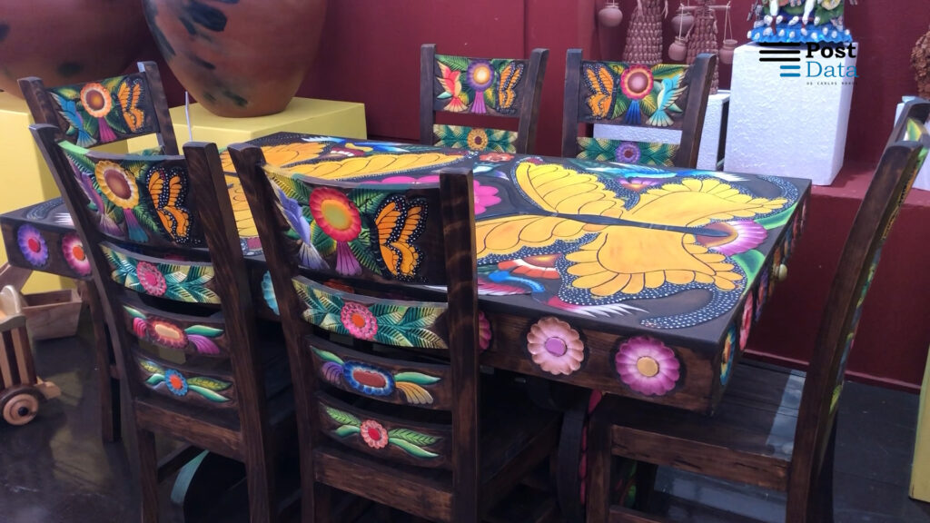 En esta comunidad hay más de 45 talleres artesanales tradicionales, expuso, los cuales venden a distintas entidades de la República Mexicana, así como a distintas localidades de Estados Unidos y República Dominicana, entre otros países, incluso de Europa.