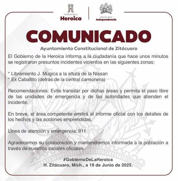 Además, se supo que los empistolados bloquearon con vehículos diferentes sectores del Libramiento Francisco J. Múgica como a la altura de la Mojonera, Tecnológico, La Palma de Cedano, Central Camionera y El Caballito; Asimismo, en la Tenencia de Curungueo fue quemado un autobús.