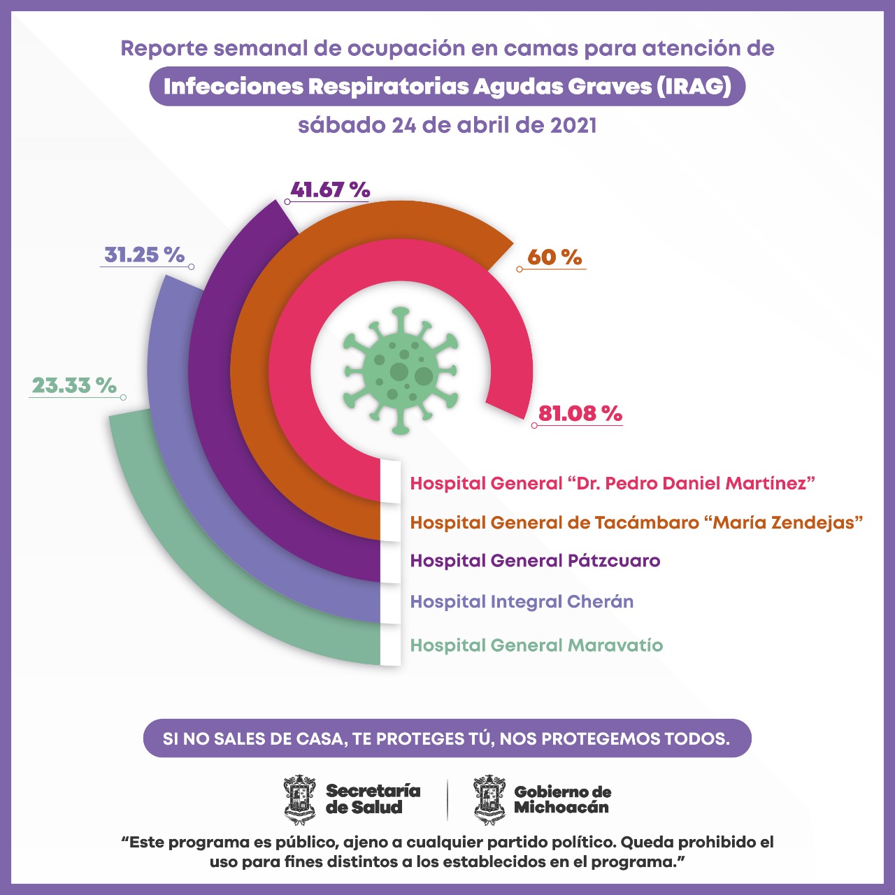 Los hospitales de Uruapan y Tacámbaro, de la Secretaría de Salud de Michoacán (SSM), son los que registran mayor ocupación de camas para la atención de Infecciones Respiratorias Agudas Graves (IRAG).