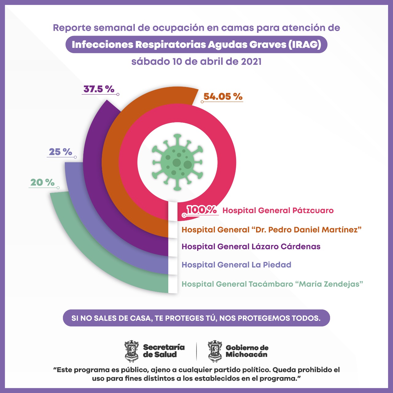 De los hospitales de la Secretaría de Salud de Michoacán (SSM), con camas reconvertidas para la atención de Infecciones Respiratorias Agudas Graves (IRAG) el General de Pátzcuaro se encuentra al 100 por ciento de su capacidad.
