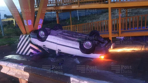 El aparatoso accidente ocurrió cerca de las 20:30 horas, sobre la carretera Zamora-Morelia, justo a la altura del Puente Peatonal de la comunidad de Canindo, donde con las llantas hacia el cielo y recargado en la estructura metálica de dicho quedo el vehículo siniestrado.