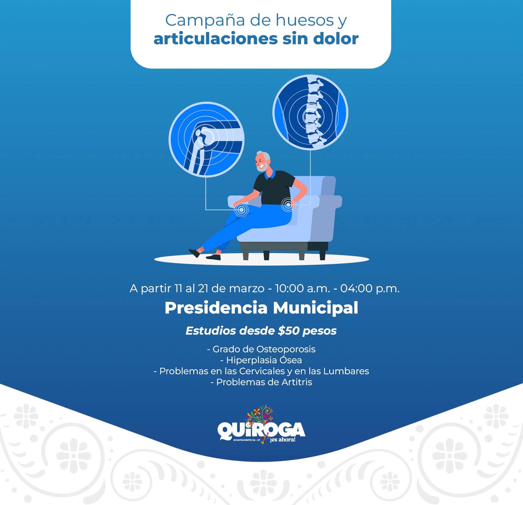 Quiroga, Michoacán.- El Gobierno de Quiroga, a través del Sistema para el Desarrollo Integral de la Familia (DIF) Municipal, lleva a cabo la campaña “Huesos y Articulaciones Sin Dolor”, con el objetivo de brindar atención accesible a los ciudadanos que padecen problemas en huesos, articulaciones y dolores musculares.