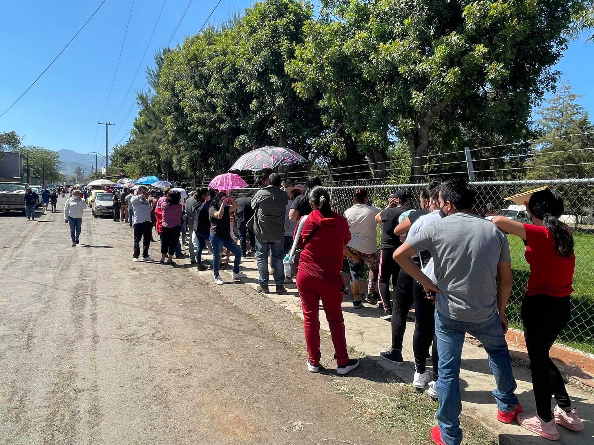“Lo que pasa es que acabaron las vacunas y estamos en espera de la siguiente remesa”, señaló Sergio Quintero Galicia, acompañado por un grupo de compañeros de trabajo que aguardaron pacientes bajo el sol.