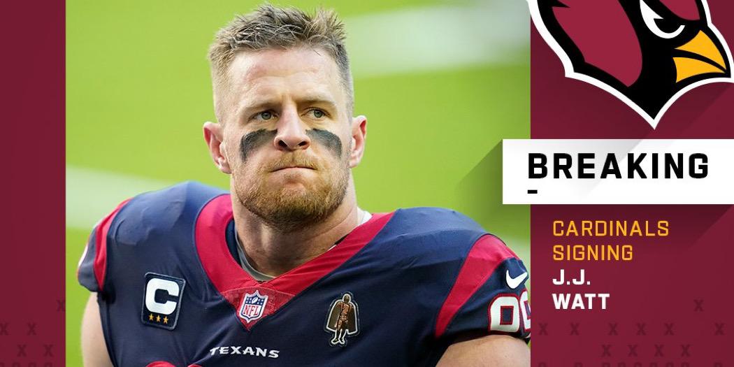 El ala defensiva J.J Watt, quien recientemente se convirtió en agente libre, anunció este lunes por medio de sus redes sociales, que llegó a un acuerdo con el equipo de Arizona Cardinals.