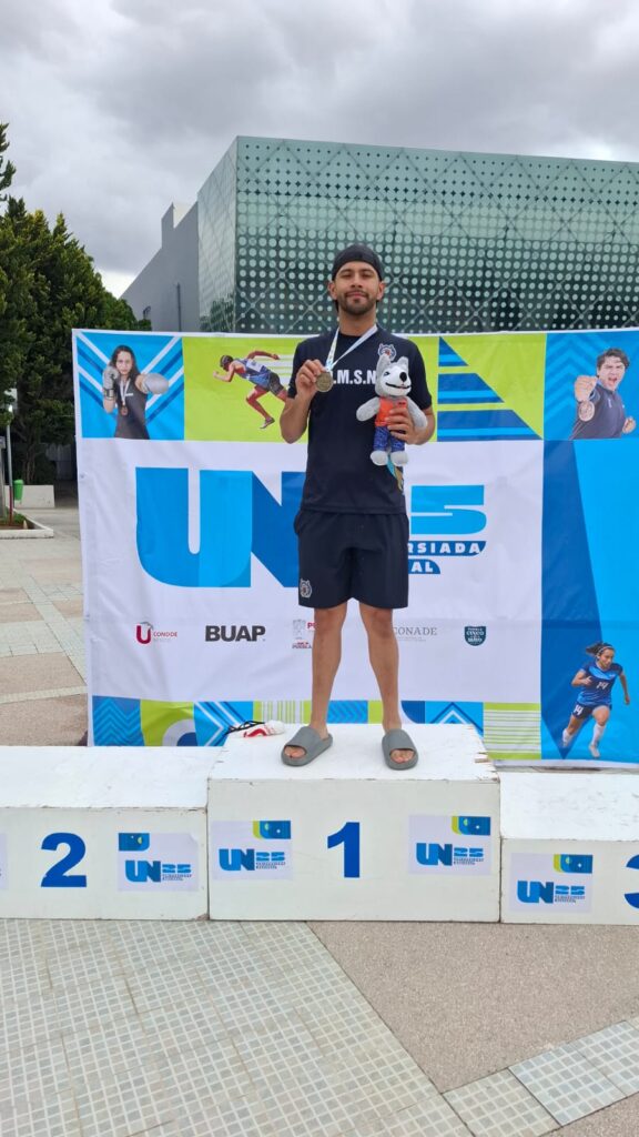 Por su parte, Oscar Eduardo Vasquez Pedraza, estudiante de la Licenciatura en Biotecnología y quien participó por primera vez en la Universiada, ganó tres metales en la disciplina de Natación: un Oro en 50 metros dorso, otra presea de primer lugar en 100 metros dorso y un Bronce en 200 metros dorso.