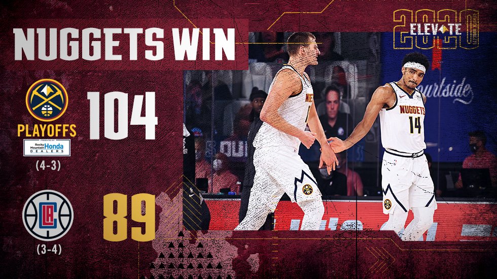 El equipo de los Nuggets continúa sorprendiendo a todos en los playoffs de la NBA, ya que ahora eliminaron a los Clippers en 7 juegos, recuperándose de una desventaja de 3 juegos a 1, ganando la serie 4-3 y sobre todo borrando prácticamente de la duela a los angelinos en el último juego de la serie.
