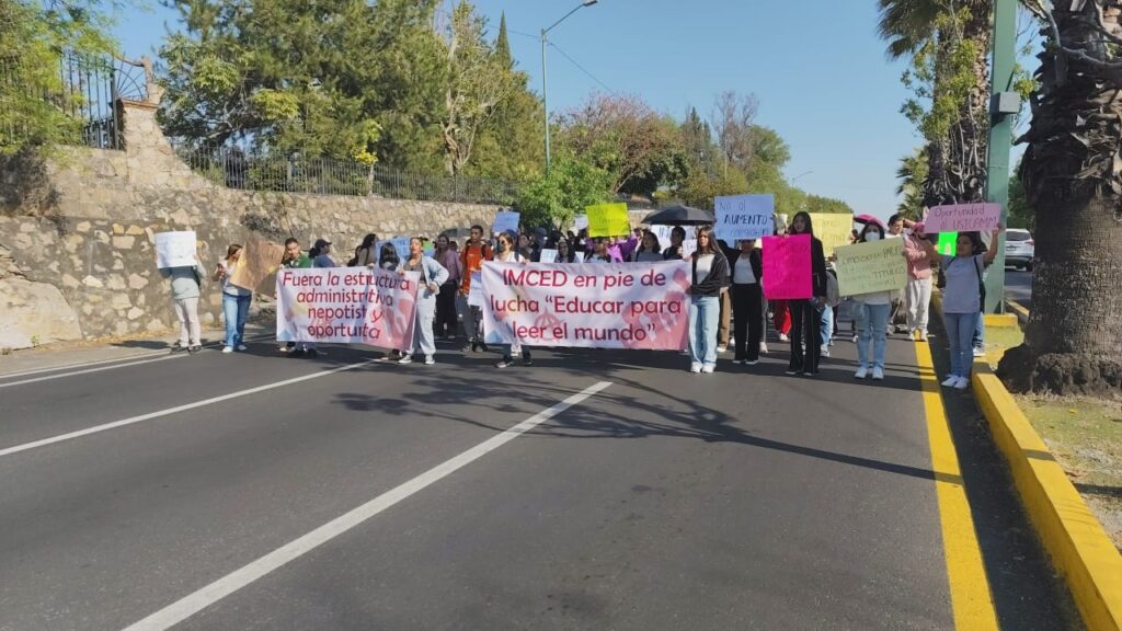 Para exigir la destitución de la directora del Instituto Michoacano de Ciencias de la Educación (IMCED), Julieta Mendoza Guzmán, a quien acusan de cobros indebidos y excesivos, así como de ineficiencia en su labor, estudiantes, trabajadores administrativos y profesores marcharon hasta Casa de Gobierno, donde bloquearon el libramiento por cerca de tres horas, en demanda de solución.