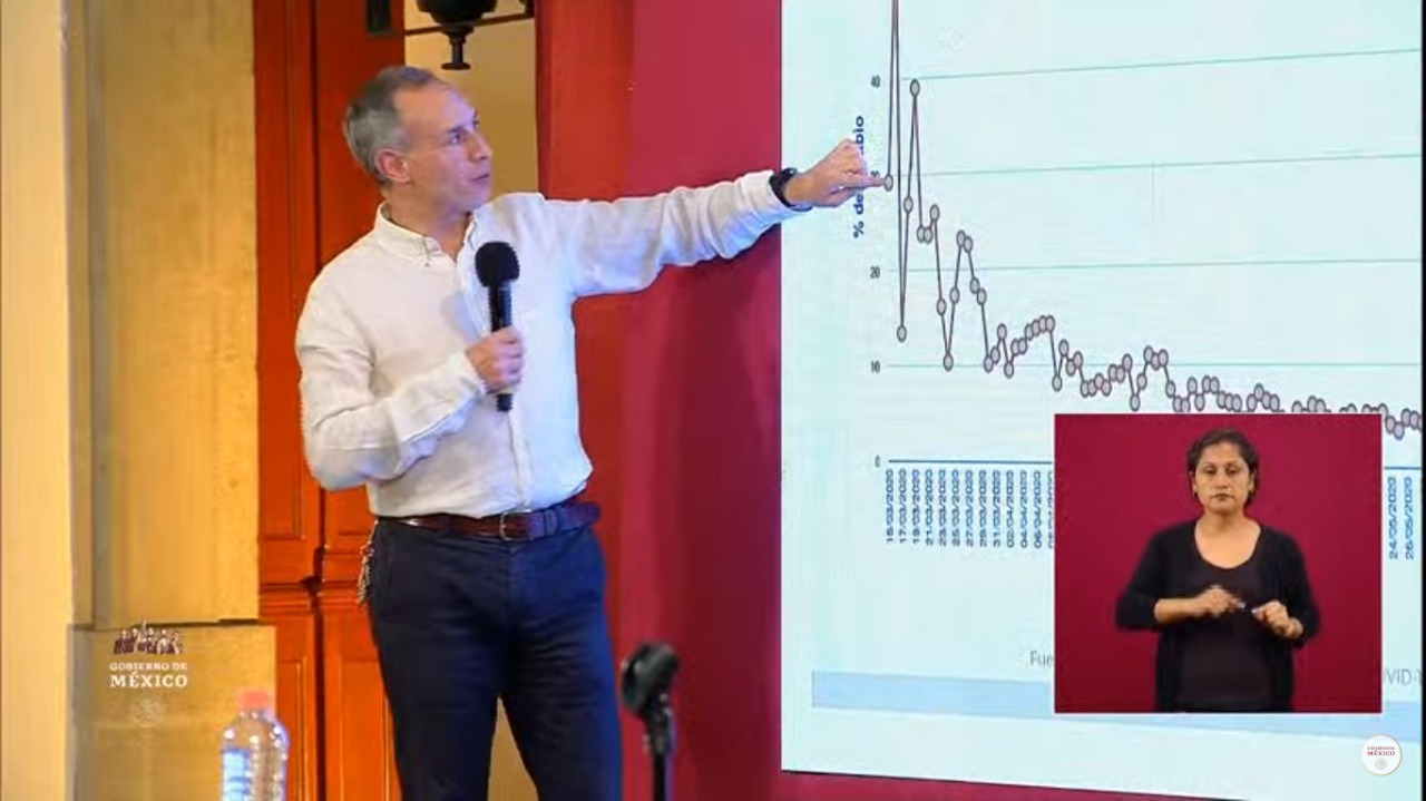 “Empezamos a ver que el promedio era 30, aquí el promedio era 20, aquí el promedio era 10, aquí el promedio ha sido 5, etc. Y aquí tenemos 1.9%, es la velocidad a la que crece la epidemia hoy en México, cuando hemos dicho que la epidemia se está desacelerando, nos referimos a este entre otros múltiples indicadores”