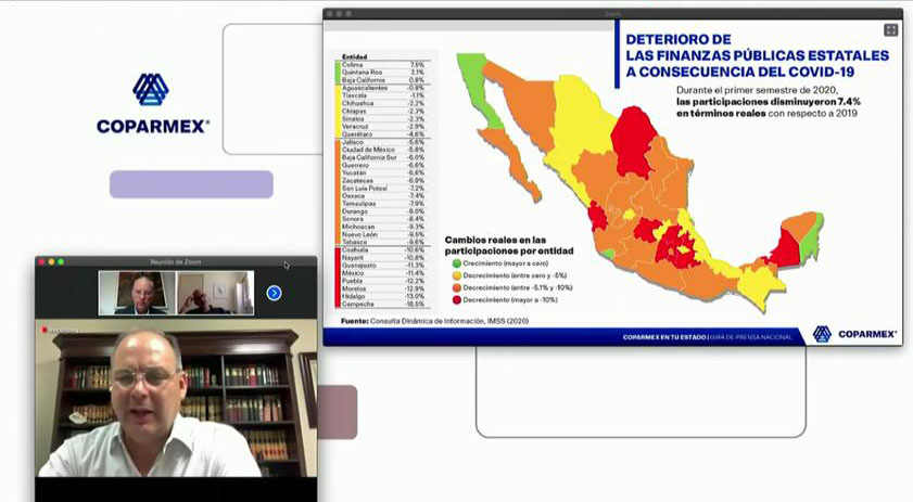 El líder empresarial, expuso que a nivel nacional, las participaciones federales bajaron un 7.4%, mientras que en el caso particular de Michoacán, esa disminución ha sido de casi 10 puntos porcentuales, lo que lo convierte en uno de los estados que más ha sufrido la restricción de flujos y recursos de la federación.