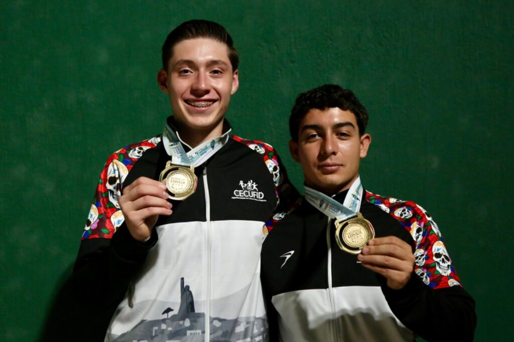 El primero de los oros fue conquistado en la modalidad de parejas en paleta cuero de la categoría C de frontón, por los raquetistas Édgar Chávez y Edwin Gómez, luego de vencer a su similar de Nayarit en dos sets: 20-13 y 20:10, anteriormente dejaron en el camino a Tamaulipas y Nuevo León, en la eliminatoria. Dicha dupla, también obtuvo uno de los bronces en frontón parejas.