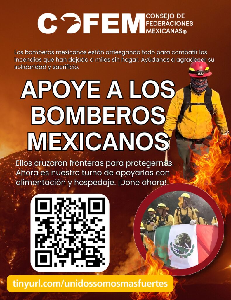 Por el momento, buscan apoyo para los bomberos que fueron enviados por el gobierno mexicano para ayudar en el combate de los incendios.