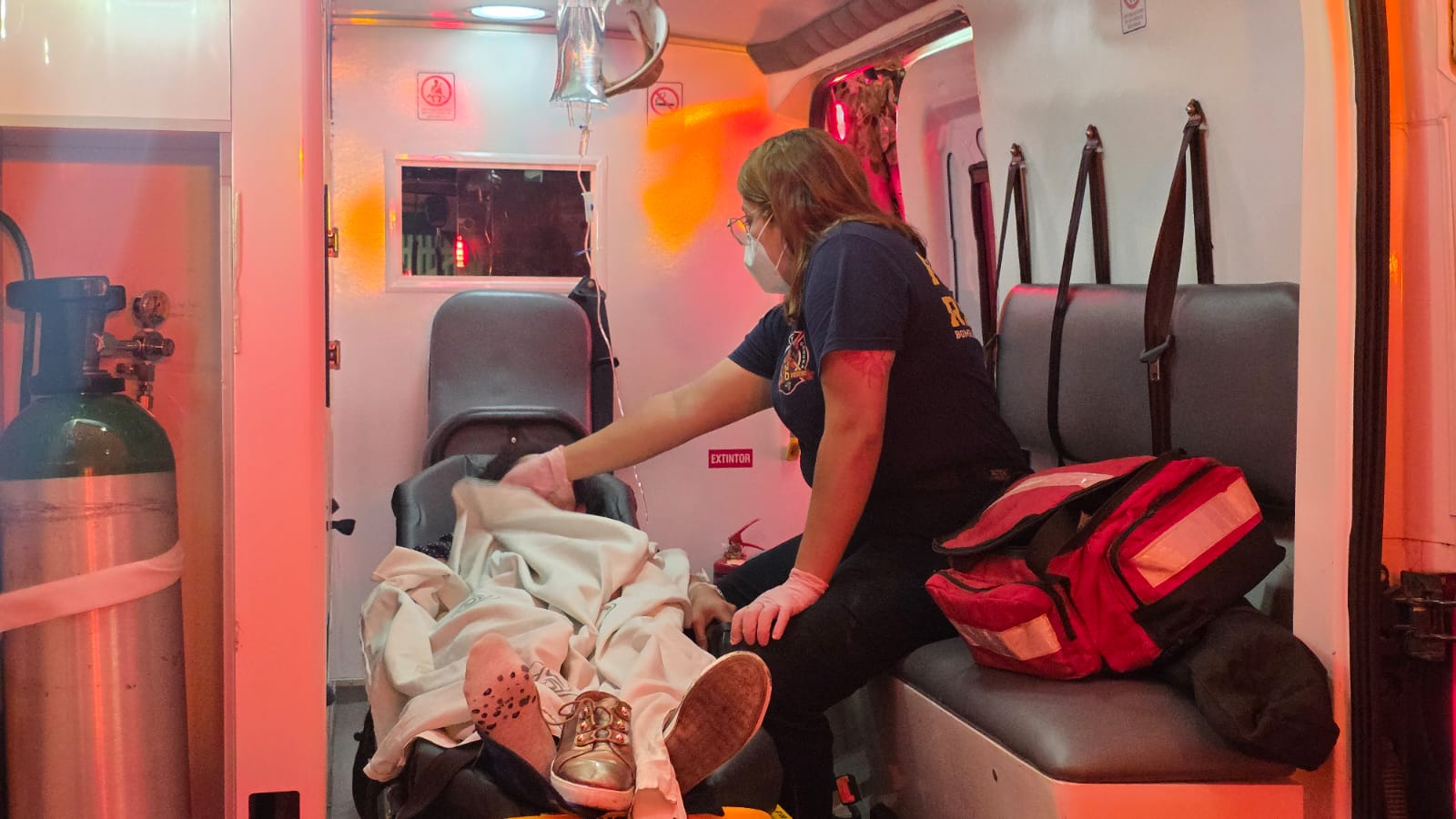 Paramédicos de Protección Civil Municipal llegaron y le brindaron los servicios prehospitalarios a Mónica S., P., mejor conocida como “La Mony”, de 26 años de edad, vecina del Fraccionamiento Altamira, misma que fue canalizada a un hospital para su atención médica.