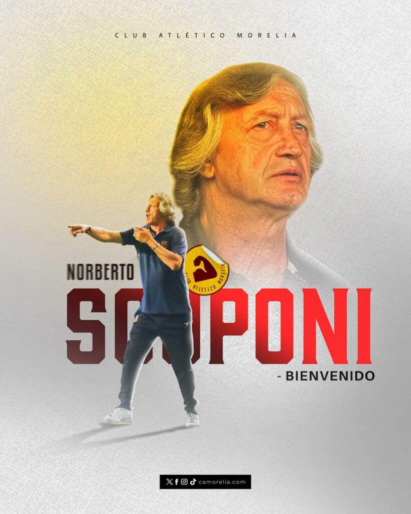 El argentino Hugo Norberto Scoponi fue nombrado como nuevo director técnico de Atlético Morelia por lo que resta del Clausura 2024, así lo dio a conocer la directiva de los canarios esta noche a través de un comunicado. El ex guardameta argentino será presentado oficialmente este viernes al medio día y será el próximo jueves cuando tenga su debut en el banquillo cuando Morelia reciba a Cimarrones.