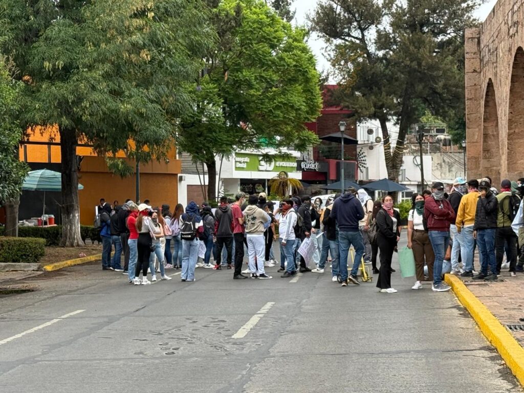 Integrantes de la Organización de Normales Oficiales de Michoacán (ONOEM), retuvieron este martes dos unidades comerciales, con las que bloquearon la circulación en la avenida Acueducto, desde el cruce con Ventura Puente y vandalizaron el módulo de la Secretaría de Finanzas.