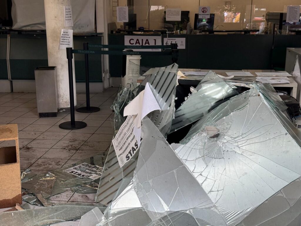 Normalistas retienen vehículos, bloquean Acueducto y vandalizan módulo de Finanzas