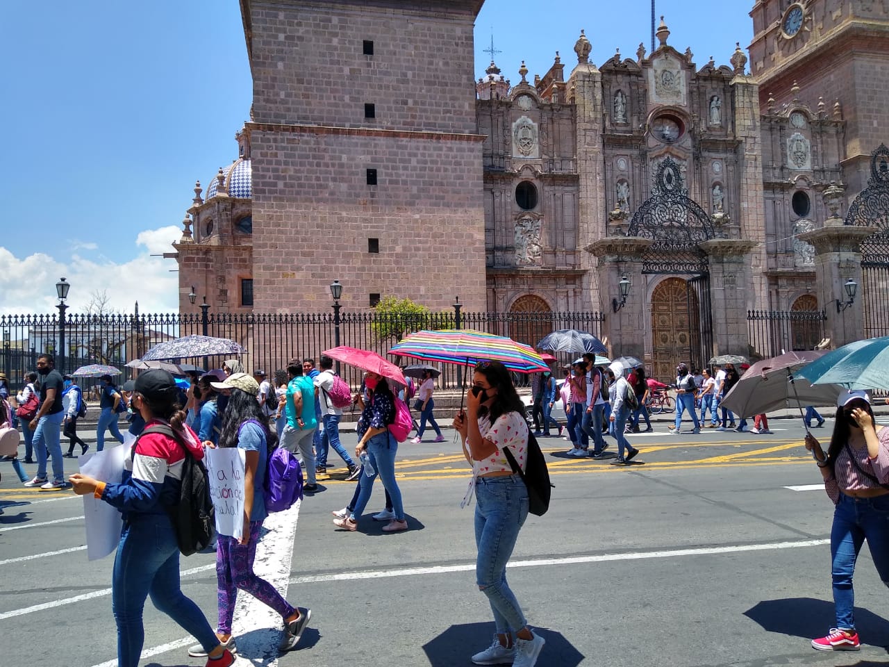 Los estudiantes normalistas sobre Calzada La Huerta y posteriormente sobre Avenida Madero, hasta llegar al Centro Histórico, donde realizaron un mitin. De igual forma realizaron un bloqueo en el cruce de las avenidas Acueducto y Madero a la altura de la Fuente de Las Tarascas.