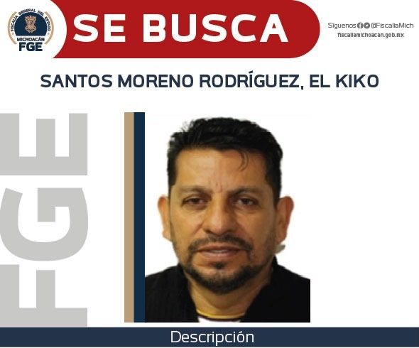 Con los datos de prueba idóneos y pertinentes recabados, la Fiscalía solicitó la respectiva orden de aprehensión en contra de Santos Moreno Rodríguez, alias “El Kiko”, por lo que se dispuso emitir el acuerdo de ofrecimiento de recompensa de 100 mil pesos a quien aporte información que conduzca a la localización y detención del investigado.