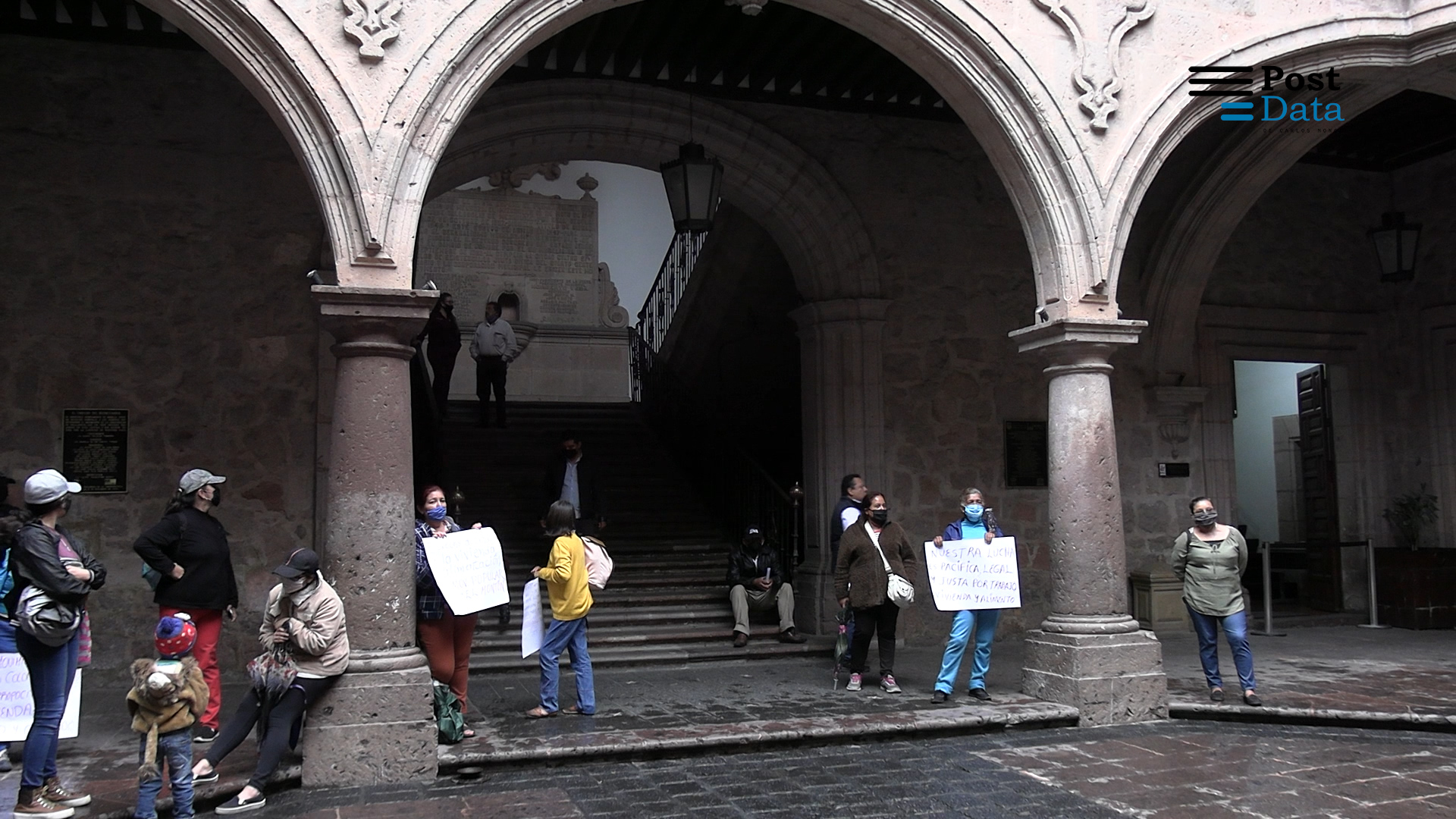 Con pancartas en mano, los manifestantes se reunieron en el patio principal para pedir que el alcalde, Raúl Morón Orozo, les ayude ya que afirman es un derecho constitucional.