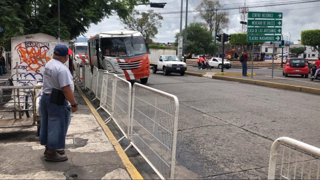 La Policía de Morelia, en coordinación con la Secretaría de Desarrollo Urbano, instaló un dispositivo de vallas metálicas en las inmediaciones del monumento a Lázaro Cárdenas con el objetivo de evitar los embotellamientos provocados por el transporte público y por conductores que se estacionan frente a los bancos.