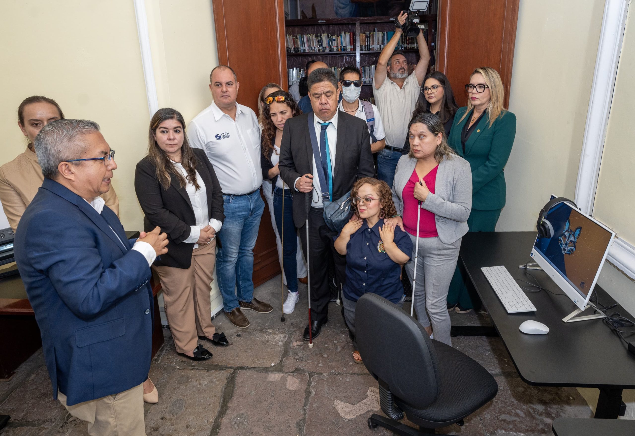 En tanto, la directora de Bibliotecas de la UMSNH, Silvia Manríquez, precisó que, el espacio inaugurado está habilitado con equipos de cómputo con pantallas táctiles y audífonos, y cada equipo cuenta con licencia de software Jaws, que lee la pantalla en voz alta, y el software OpenBook, un programa de reconocimiento de caracteres para facilitar la lectura, además una impresora braille con software Index-direc, así como un multifuncional para ofrecer recursos y herramientas que faciliten la accesibilidad e inclusión.