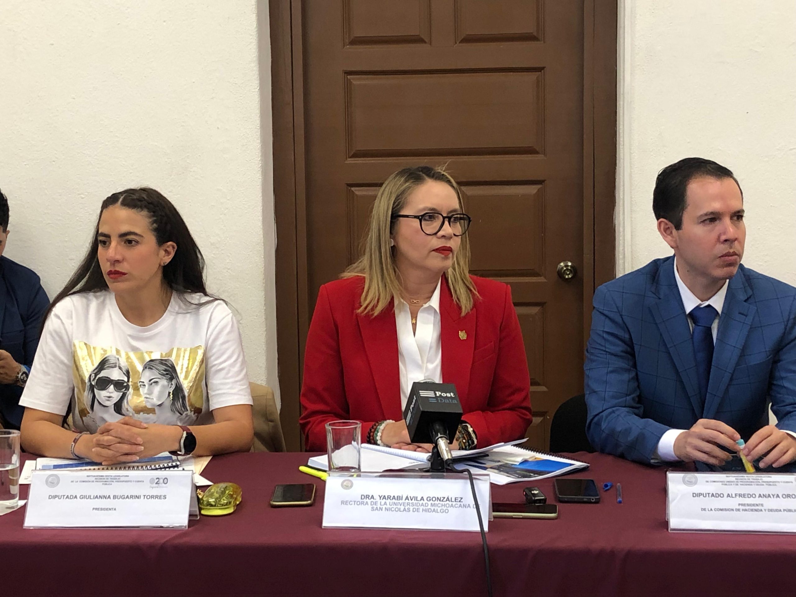 La rectora de la Universidad Michoacana de San Nicolás de Hidalgo (UMSNH), Yarabí Ávila González aseguró a diputados integrantes de las comisiones de Presupuesto y Hacienda, que el presupuesto de 4 mil 452 millones de pesos que propone el gobierno estatal para el 2025, garantizará que no exista déficit y que transite hacia una aportación a partes iguales con la federación.