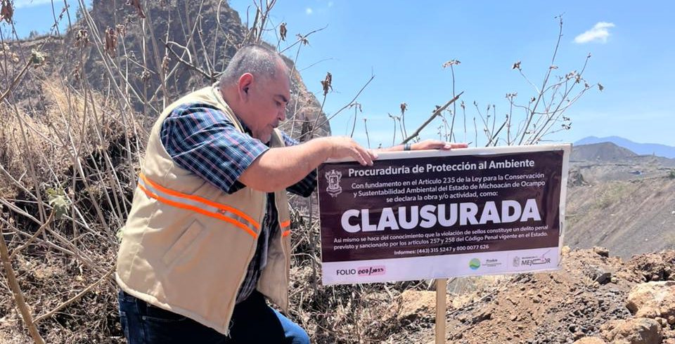 Morelia, Michoacán.- Tras una denuncia ciudadana presentada ante la Procuraduría de Protección al Ambiente (PROAM), se logró la suspensión de actividades de un banco de materiales pétreos, en la comunidad de San Bernabé, perteneciente a la tenencia de Capula, Morelia, el cual rebasó el límite del polígono establecido en su autorización en materia de impacto ambiental para la extracción y aprovechamiento de minerales.