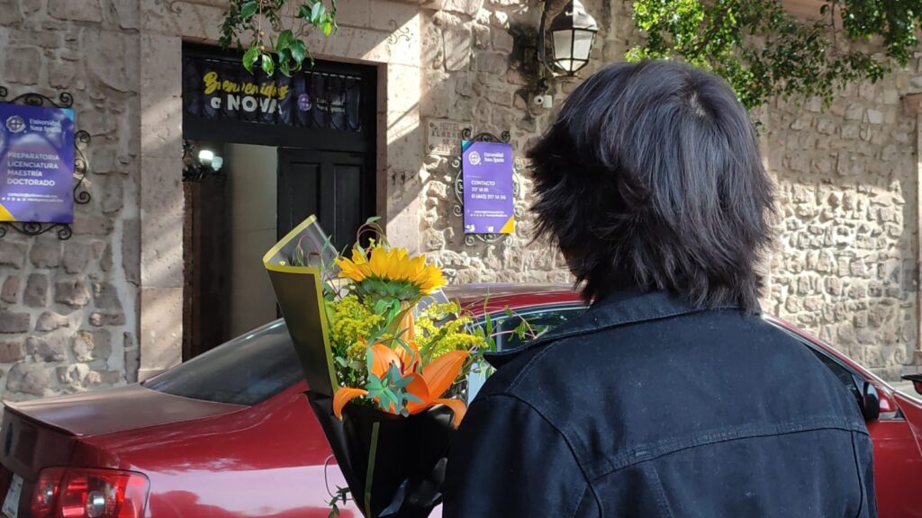 Morelia, Michoacán.- “Aquí te espero”, se oye decir a un joven nervioso a las afueras de una preparatoria; en sus manos, uno de los muchos ramos de flores que, desde temprana hora, inundan el Centro Histórico de Morelia este Día del Amor y la Amistad.