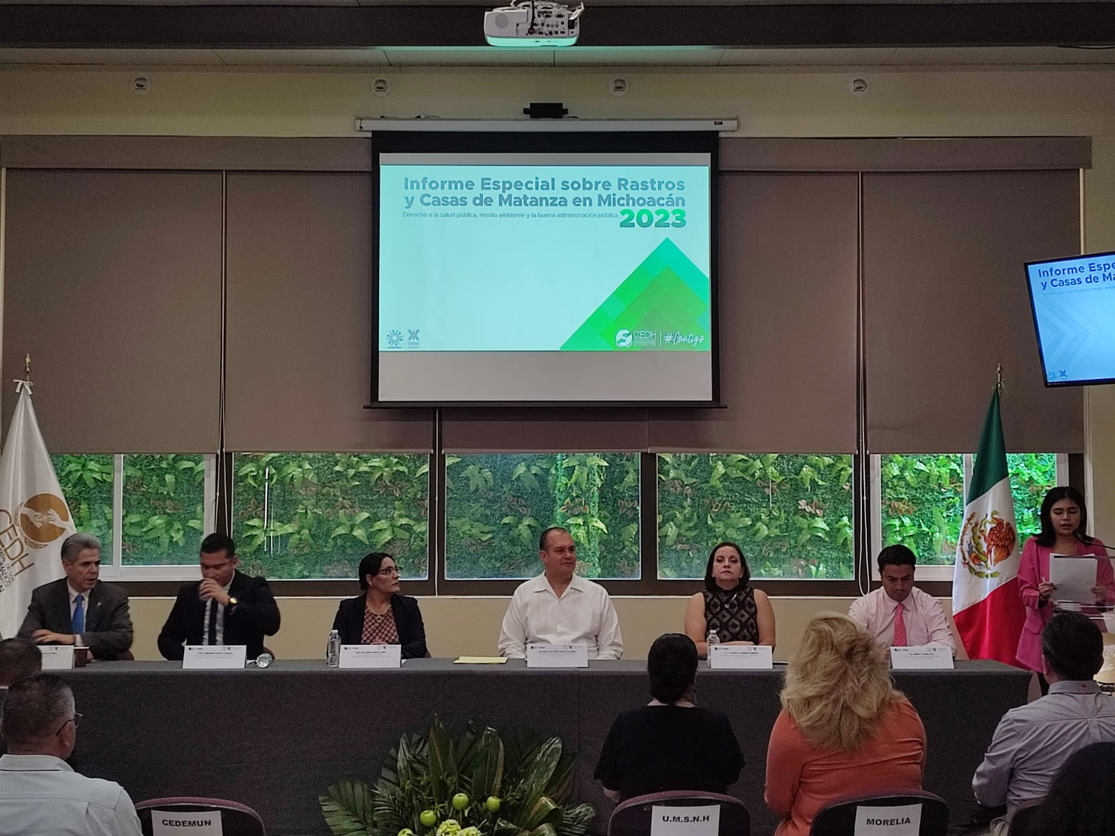 Ante funcionarios de los tres niveles de gobierno, de la Comisión Estatal para la Protección contra Riesgos Sanitarios (COEPRIS) y el Congreso de Michoacán, el Coordinador de agendas y mecanismos de la CEDH, Edgar Enrique Moreno Sierra, destacó que el 56% de los municipios michoacanos, hicieron caso omiso a la petición del organismo autónomo por informar sobre el modo de operar en dichos rastros o casas de matanza.