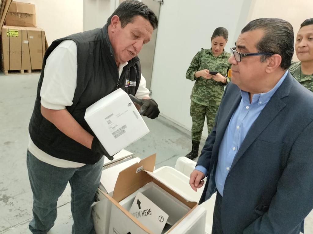 Al titular de la Secretaría de Salud de Michoacán (SSM), Elías Ibarra Torres, le correspondió la recepción de los biológicos que serán distribuidos a los centros de salud de la entidad, para inmunizar a los menores que aún no se han vacunado o les hace falta la segunda dosis.