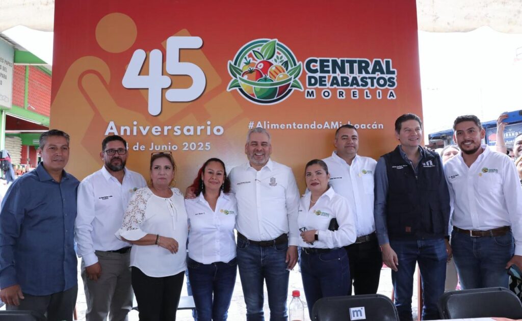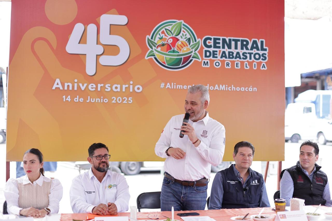 Morelia, Michoacán- Al asistir al 45 Aniversario del Mercado de Abastos, el gobernador Alfredo Ramírez Bedolla reconoció la importancia económica que representa este centro logístico para el abastecimiento y distribución de productos frescos, de calidad y de primera necesidad para Morelia y la región.