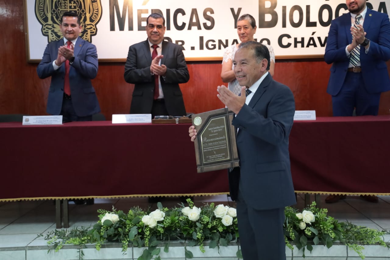 Morelia, Michoacán.- El titular de la Secretaría de Salud de Michoacán (SSM), Elías Ibarra Torres, encabezó la conmemoración del Día del Médico de la Facultad de Medicina y Ciencias Biológicas “Dr. Ignacio Chávez” de la Universidad Michoacana de San Nicolás de Hidalgo (UMSNH).