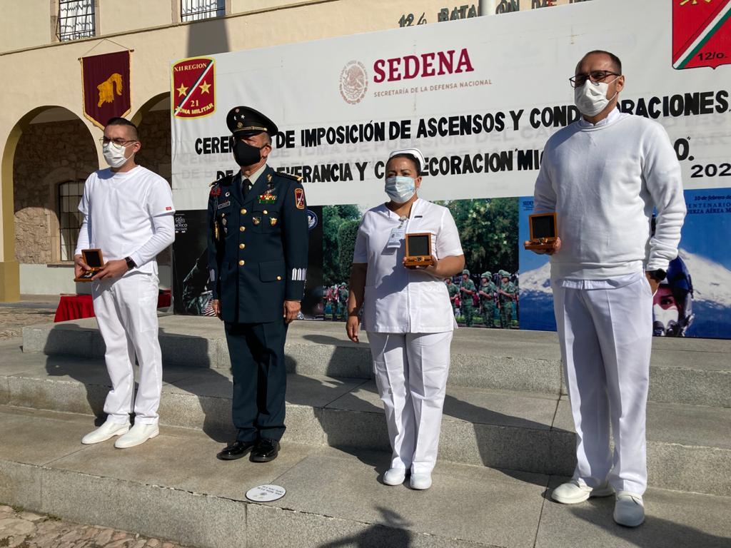 Asimismo se entregaron las condecoraciones “Miguel Hidalgo” máximo galardón que otorga el gobierno federal, al personal médico del Instituto de Seguridad y Servicios Sociales de los Trabajadores del Estado (ISSSTE) por su labor durante la contingencia del Covid-19.