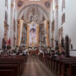 Caso contrario fue el templo de San Francisco. Al transitar la plaza Valladolid, a lo lejos apreciamos a un grupo de personas saliendo de la iglesia, todos eran mayores y se protegían con cubrebocas; al cruzar la puerta, a lo lejos resaltó una nube de incienso y a lo mucho una decena de fieles sentados rezando. Es preciso decirlo, fue la única iglesia de todo el recorrido con una cantidad considerable de católicos.