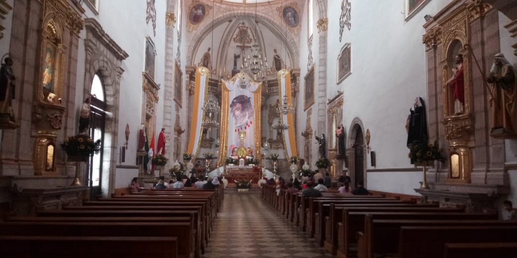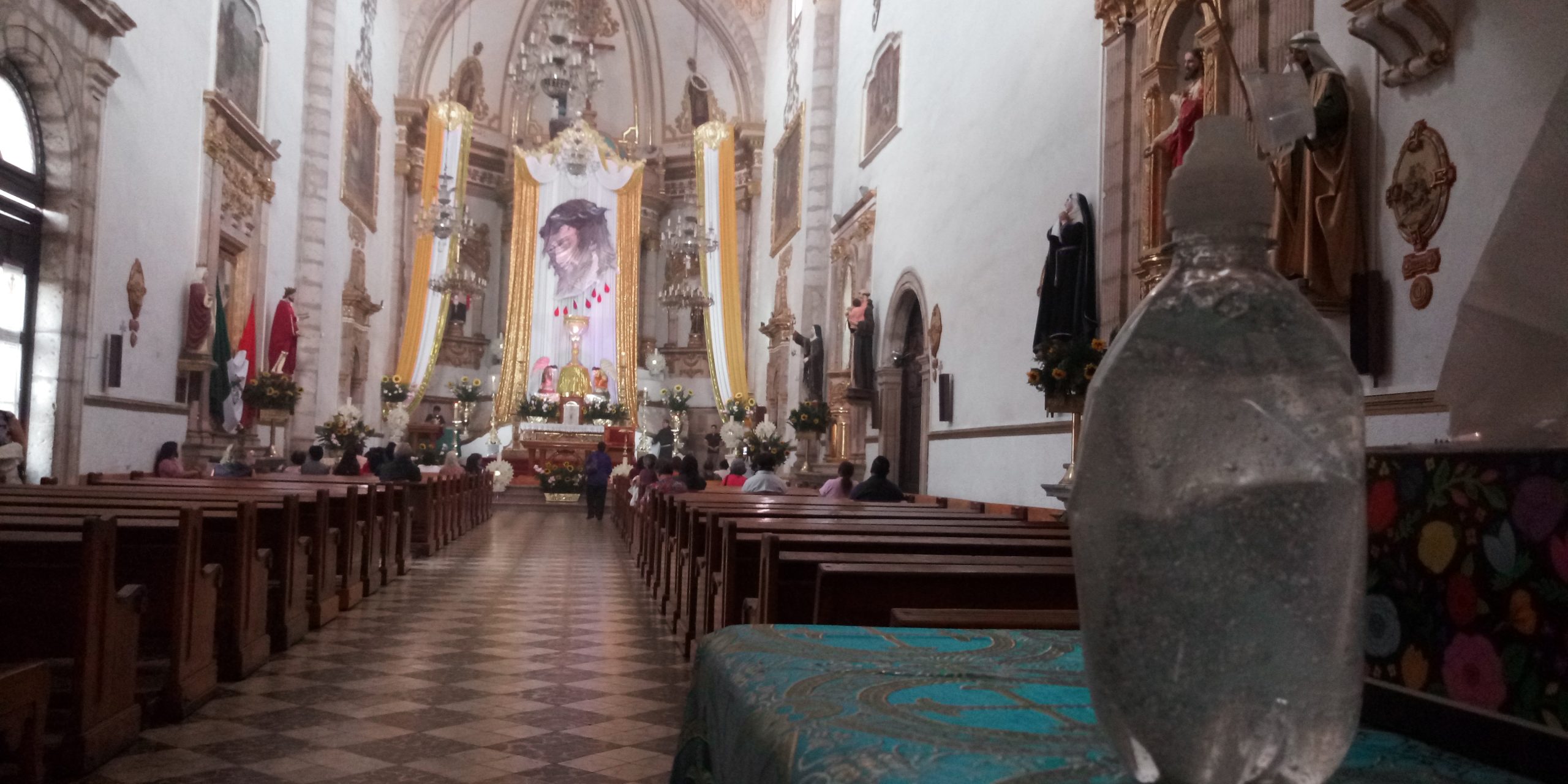 Caso contrario fue el templo de San Francisco. Al transitar la plaza Valladolid, a lo lejos apreciamos a un grupo de personas saliendo de la iglesia, todos eran mayores y se protegían con cubrebocas; al cruzar la puerta, a lo lejos resaltó una nube de incienso y a lo mucho una decena de fieles sentados rezando. Es preciso decirlo, fue la única iglesia de todo el recorrido con una cantidad considerable de católicos.