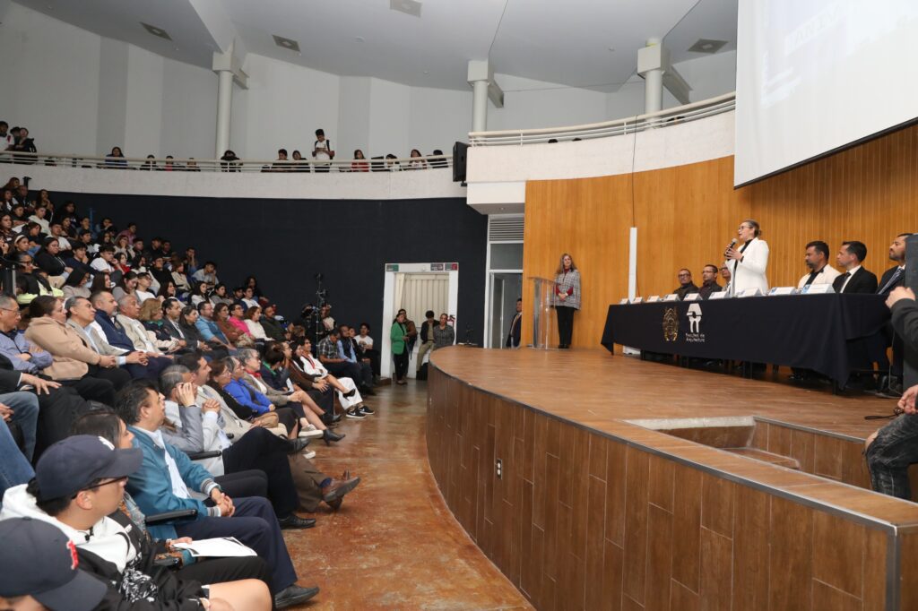 Por su parte, el director de la Facultad de Arquitectura, Axel Becerra Santacruz, precisó que en este aniversario es importante ratificar el compromiso en la premisa “primero la academia”, al respecto compartió cinco puntos clave, como son: la búsqueda de la certeza laboral para la consolidación del personal docente; la consolidación del plan de estudios y el modelo educativo transversal, en este sentido adelantó que el siguiente año se estará presentando la actualización del plan de estudios, así como la ampliación posiblemente del nombre de la Facultad de Arquitectura a Facultad de Arquitectura y Diseño.