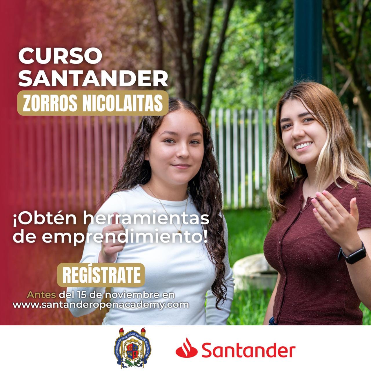 Morelia, Michoacán.- El tiempo se agota para inscribirse en los Cursos Santander “Zorros Nicolaitas”, que la Universidad Michoacana de San Nicolás de Hidalgo (UMSNH) pone a disposición de la comunidad universitaria a través de la alianza con Banco Santander, con el fin de ofrecer actividades complementarias para fortalecer las competencias profesionales.