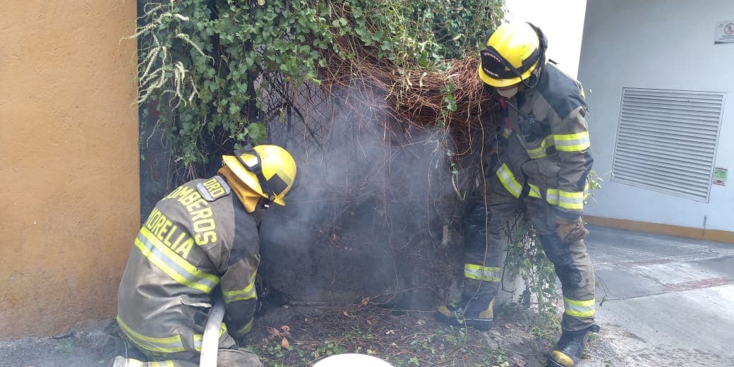 Morelia, Mich.-Elementos de Bomberos Morelia atendieron un incendio de un árbol seco en la colonia Cuauhtemoc, donde se concentran varios hospitales públicos y privados, por lo que algunos vecinos se espantaron al ver el humo.